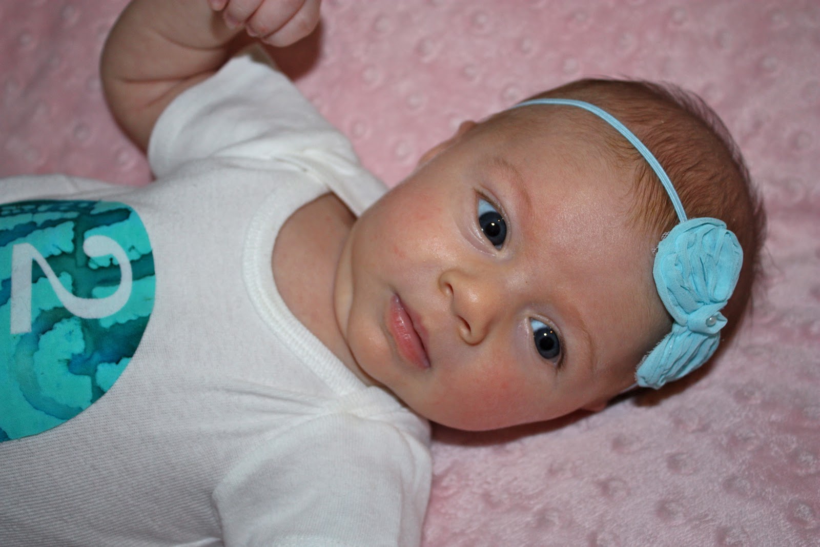 Trevi is going to be 12 weeks on Monday! She feels so big and seems to be doing something new everyday! As you can see she can roll over (from stomach to back, sort of), she is sitting up much better (with assistance from the chair), she found her hands and is either sucking on them or staring very intently at them, she loves loves loves to stand and she is still smiling soooooooo much! She even smiles at strangers now! Thanks for checking in on us!!!